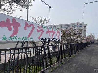 以前お伝えした書道部作成の看板「サクラサク」ですが、