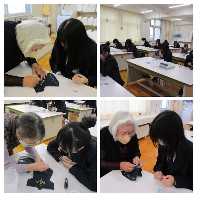 11月4日(火)~11月7日(金) 服飾手芸の授業において、登別アイヌ刺繍アシリの会より芳賀美津枝様、佐藤マサエ様を講師にお迎えし「アイヌ刺繍」を実施しました。