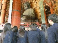 見学旅行最終日は奈良公園を訪れました。南大門や東大寺大仏殿では、歴史の重みを感じながら見学を行い、迫力ある大仏の姿に多くの生徒が感動していました。その後、若草山周辺を散策し、奈良の穏やかな自然に包まれながらゆったりとした時間を過ごしました。