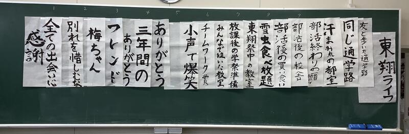 3年次の書道文化の授業で、卒業詩を合作しました。