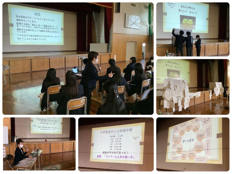 令和7年12月18日(木)、3年次生を対象に、母乳育児サポートHappy mama Belle代表 助産師・思春期保健相談士の髙村 泰子さんを講師にお迎えし、思春期の性に関して正しい知識を学び,自他の存在を大切にできる心を養う目的で「性の講話」を実施しました。スライドを使用し,具体的に,分かりやすい話をしていただき、生徒は「性行為」について学ぶとともに、「自分らしさ」や「無意識の偏見」についても学びを深められました。